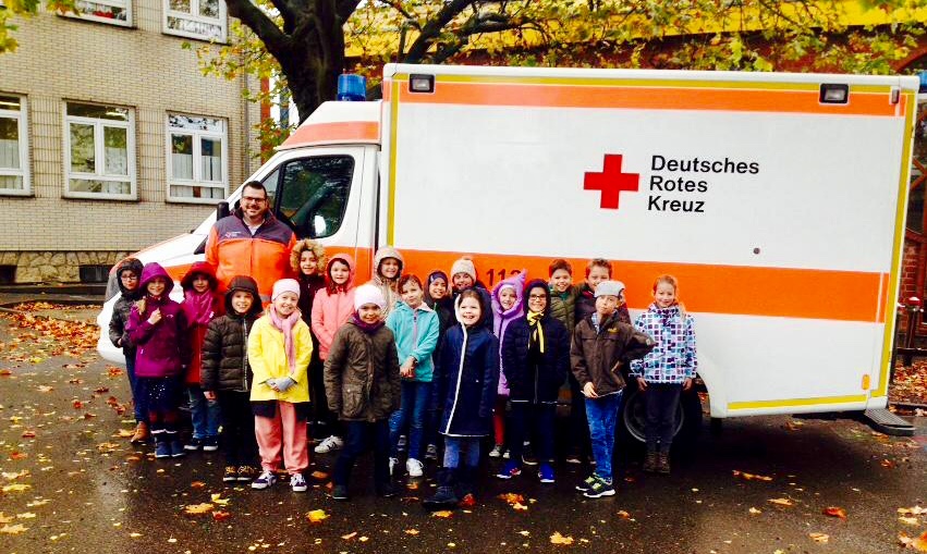 Nachdem die Klassen 3a und 3b seit Mitte September im Sachunterricht das Thema „Erste Hilfe“ bearbeitet haben und sich dabei sowohl um das Absetzen eines Notrufs, als auch um mögliches Nasenbluten oder das Verbinden einer Fingerwunde gekümmert haben, war es nun endlich soweit: