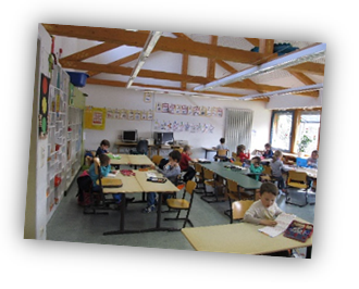Unter Aufsicht erledigen die Kinder selbständig in klassenspezifischen Gruppen ihre Hausaufgaben.